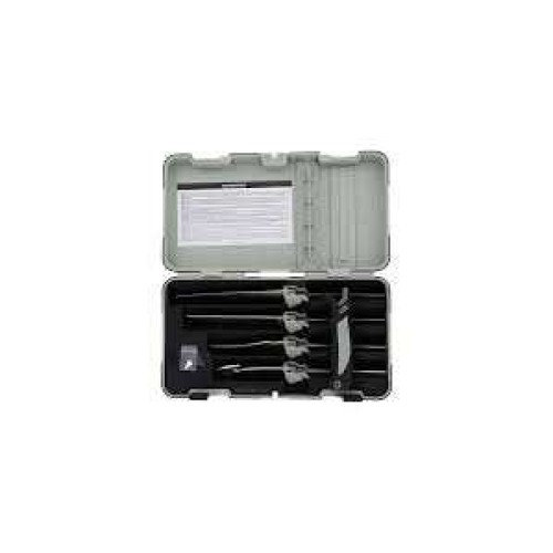 Included blades are a 6” bone saw, 5.25” boning blade, 4” Sharpfinger® blade & 3.75” gut hook blade.